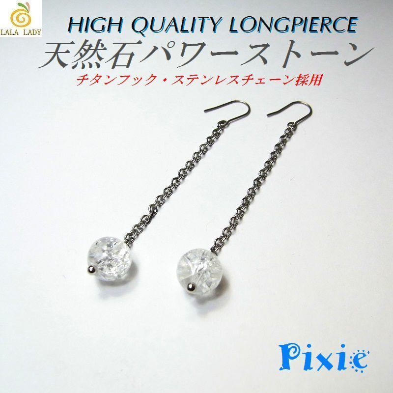 ■ララレディーオリジナルブランド、「Pixie」(ピクシー:妖精)は、高品質・ロープライスにこだわり、企画・製造・販売を全て自社で行っています。■ハイクォリティと金属アレルギーに配慮ししたロングピアスです。■ピアス本体はチタン製、チェーンはステンレス製。キズ・変形・変色に強く、長期間に渡りご愛用出来る、非常に優れたピアスです。フック部分は、太さが細く、小さめです。 ※チェーン長さのリクエストにお答えしています。コメント欄に書き込むか、メール等でご連絡ください。 ■水晶のパワーは、『調和・統合・強化』。そして非常に優れた浄化作用をもたらす石として知られています。石はもちろん、すべてのものに対しての調和を生み出し、それらをうまく統合させ、よりいっそう強力なパワーを発揮させるように導いてくれるのです。【材質】ピアス本体:チタンフック チェーン部分:ステンレス 主石:クラッククリスタル(水晶):8mm 【サイズ】ピアスフック:太さ24G(ゲージ)大きさ:10mmx6mm チェーン:太さ2mmあずきタイプ4cm (ピアスの全長:57mm) ※左右分2個セットです。