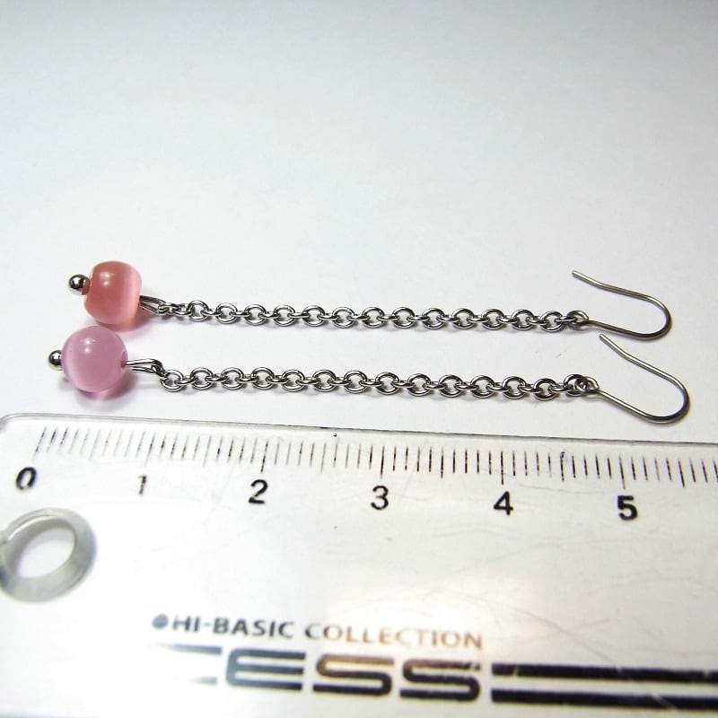 ■ララレディーオリジナルブランド、「Pixie」(ピクシー:妖精)は、高品質・ロープライスにこだわり、企画・製造・販売を全て自社で行っています。■ハイクォリティと金属アレルギーに配慮ししたロングピアスです。■ピアス本体はチタン製、チェーンはステンレス製。キズ・変形・変色に強く、長期間に渡りご愛用出来る、非常に優れたピアスです。フック部分は、太さが細く、小さめです。 ※チェーン長さのリクエストにお答えしています。コメント欄に書き込むか、メール等でご連絡ください。 ■ピンクキャッツアイ:不思議な性質を持つパワーストーンです。決断を促し、強さを与えてくれ、恋愛運を高めるパワーがあります。【材質】ピアス本体:チタンフック チェーン部分:ステンレス 主石:ピンクキャッツアイ 6mm 【サイズ】ピアスフック:太さ24G(ゲージ)大きさ:10mmx6mm チェーン:太さ2mmあずきタイプ4cm (ピアスの全長:57mm) ※左右分2個セットです。