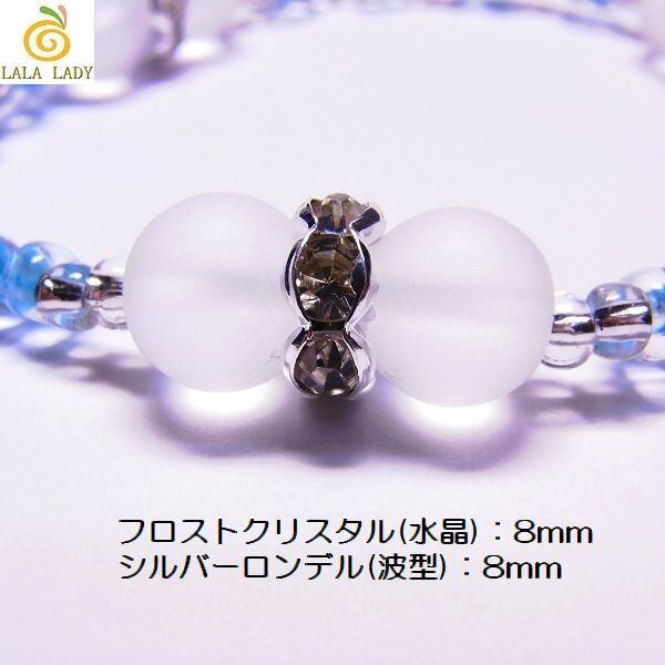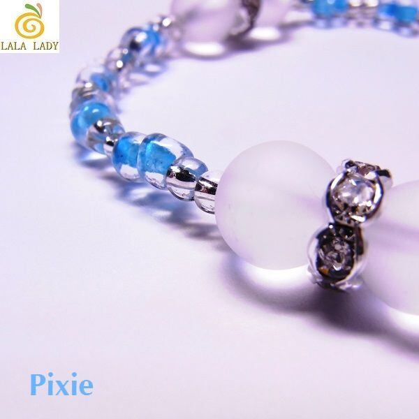 ※ご希望の腕周り(内周)サイズを選択してください。※サイズの目安は、実際に腕周りを計測し、その数値にプラス1.5~2cmがおススメサイズになります。ララレディーオリジナルブランド、「Pixie」(ピクシー:妖精)は、高品質・ロープライスにこだわり、企画・製造・販売を全て自社で行っています。フロストクリスタル&ブルービーズ モデルは、キラキラビーズとフロストクリスタル(水晶)でデザインされた美しいブレスレットです。ゴムひもは、柔軟性と耐久性が優れているモビロンゴムを採用。【サイズ】内径:13cm~18cm ■フロストクリスタル(水晶)8mmサイズ■ブルービーズ■シルバービーズ■シルバーカラーロンデル(波型)8mmタイプ■モビロンゴムひも0.8mm(太さ) ※照明、光の具合により、多少イメージと違って見える事があります。