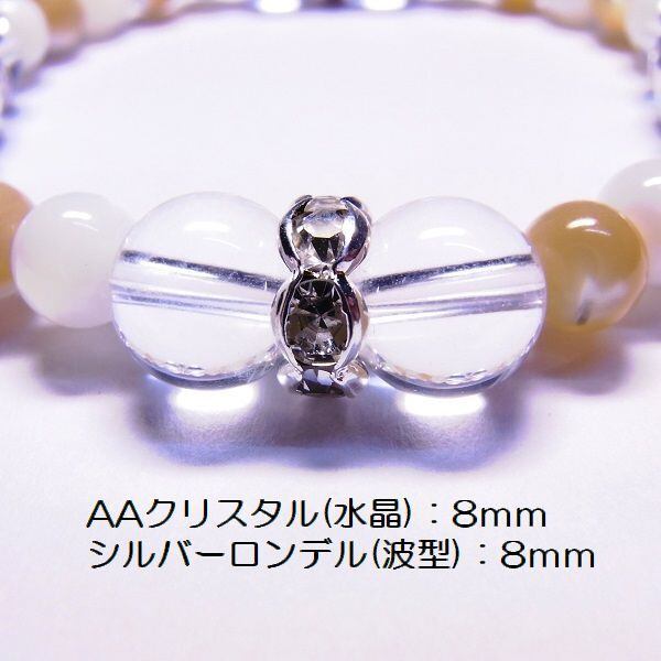 ※ご希望の腕周り(内周)サイズを選択してください。※サイズの目安は、実際に腕周りを計測し、その数値にプラス1.5~2cmがおススメサイズになります。ララレディーオリジナルブランド、「Pixie」(ピクシー:妖精)は、高品質・ロープライスにこだわり、企画・製造・販売を全て自社で行っています。マーメイド マザー(Mother)モデルは、出産、育児、全体運等をアップし、ママをサポートする為に企画したブレスレットとララレディーオリジナル「ミニ浄化セット」をプラスした大変お得なスペシャル商品です。■AAクリスタル(水晶):強いヒーリングエネルギーを作り出し、全てを浄化し、悪運を退け、健康と幸福を与えてくれると言われています■カプチーノ・マザー・オブ・パール(蝶貝):心を癒し、安産のストーンと言われています■ホワイト・マザー・オブ・パール:安産、育児を助け、心を癒すパワーがあると言われています。【サイズ】内径:14cm~19cm ■AAクリスタル(水晶)8mm■カプチーノ・マザー・オブ・パール6mmサイズ■ホワイト・マザー・オブ・パール6mmサイズ■シルバーロンデル(波型)8mm■モビロンゴムひも0.8mm(太さ)■ミニ浄化セット:ホワイトセージの葉約5枚、水晶さざれ石25g ※照明、光の具合により、多少イメージと違って見える事があります。