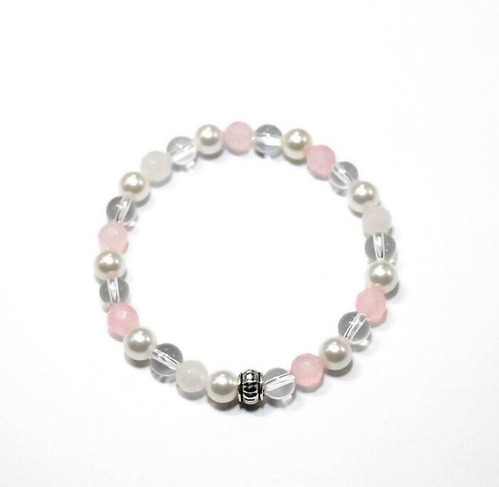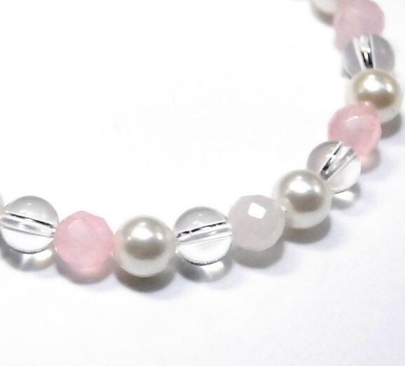 ※ご希望の腕周り(内周)サイズを選択してください。※サイズの目安は、実際に腕周りを計測し、その数値にプラス1.5~2cmがおススメサイズになります。オリジナルブランド「Pixie」(ピクシー:妖精)より、パールブレスレットが新発売!カジュアルからフォーマルまで幅広くご使用いただけます。■シェルパール:パールは守護のパワーが強く、ストレスで疲れた体を癒し、守ってくれる効果がある。身につけると女性の美しさ、柔らかさ、エレガントさを引き出し、魅力と愛情、優しさを高めます。■ローズクォーツ:愛を象徴し、恋愛、家族の愛、友人への愛、物や仕事への愛、母性愛など、あらゆる愛の石と呼ばれる。特に恋愛に対しては効果が高く、片思い、出会い、良縁、結婚などに効果的。■クリスタル(水晶):強いヒーリングエネルギーを作り出し、全てを浄化し、悪運を退け、健康と幸福を与えてくれると言われています。 ■内径サイズ:14cm~19cm ■シェルパール:6mmサイズ ■ローズクォーツ 64面カット:6mm ■AAクリスタル(水晶):6mm ■連結パーツ:5.5mmx6.5mm ■モビロンゴムひも0.8mm(太さ) ※照明、光の具合により、多少イメージと違って見える事があります。※各ストーンのサイズ等を確認のうえ、ご検討ください。
