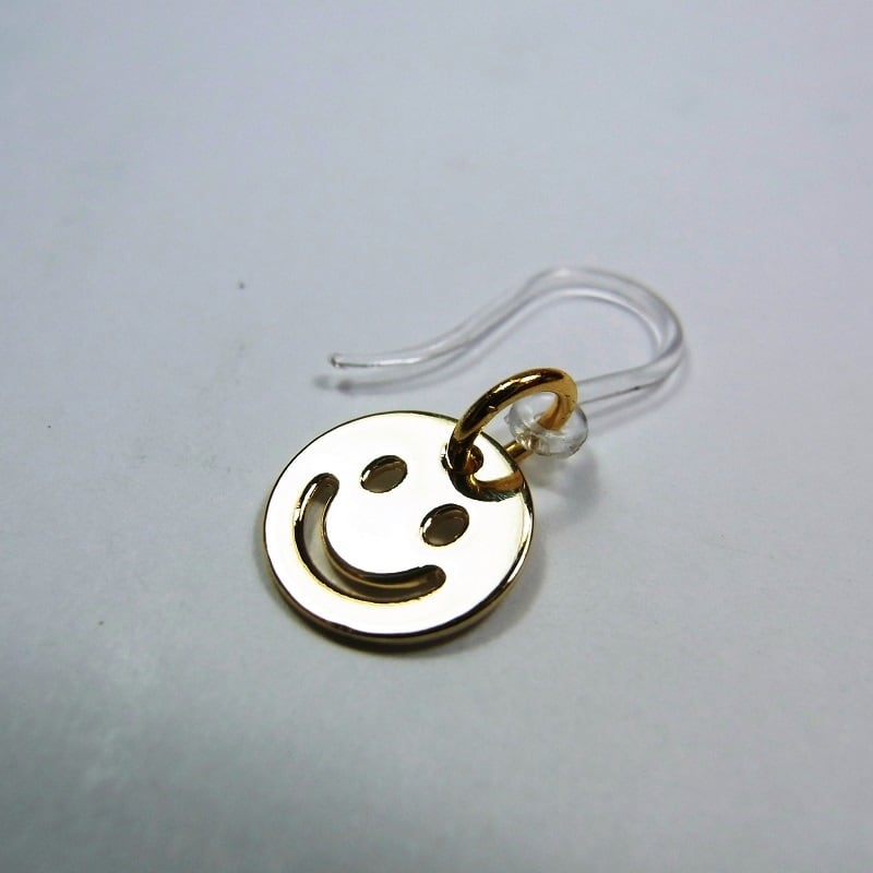 ■「ANGEL FACTORY」は、低価格とクォリティにこだわりデザインされ、ララレディースタッフによるハンドメイドアクセサリーです。 ■金属アレルギーに配慮した樹脂製フックピアスです。■ピアス本体は樹脂製です。軽量で柔軟性があり、フィット感も抜群です。■輝くゴールドのスマイルマーク!みんな大好きなモチーフです。【材質】樹脂、合金ゴールドメッキ 【サイズ】トップ部:直径9mm、全長:21mm(フック部分を含む) ※左右分2個セットです。