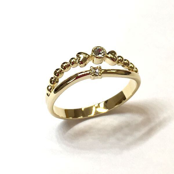 ※必ずご希望のサイズを選択してください。■安心の日本製。指輪本体の作製とコーティング(メッキ仕上げ)は、日本の職人の手により仕上げられています。スワロフスキー社製クリスタル使用。ツインフレーム&ハートのデザイン。ニッケルを極々微量まで抑えたメッキ加工を施していますので、アレルギー対策に優れております。【サイズ】指輪サイズ:9号,11号,13号,15号 (前記定番サイズ以外の1号~28号も対応します。■定番サイズは7日以内、その他のサイズは10日以内に発送いたします。)【材質】真鍮 ニッケルフリー、スワロフスキー社製クリスタル ライトゴールドコーティング ※ニッケルフリー加工ですが、100%のフリーではありません。