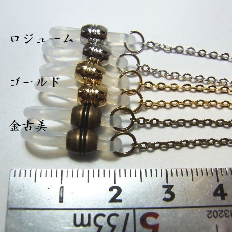 ■「ANGEL FACTORY」は、低価格とクォリティにこだわりデザインされ、ララレディースタッフによるハンドメイドアクセサリーです。 ■超軽量の極細1mmあずきチェーンを使用。カラーは、ロジューム、ゴールドよりチョイス出来ます。金古美は完売終了です。長さは平均的な55cmですが、リクエストを頂ければ、ご希望のサイズにて製作します。【材質】合金製 幅1mmあずきチェーン メガネ接続具:シリコン、合金 【サイズ】幅3mm 厚み1mm強 長さ:55cm 【カラー】ロジューム、ゴールド 金古美は完売終了です。
