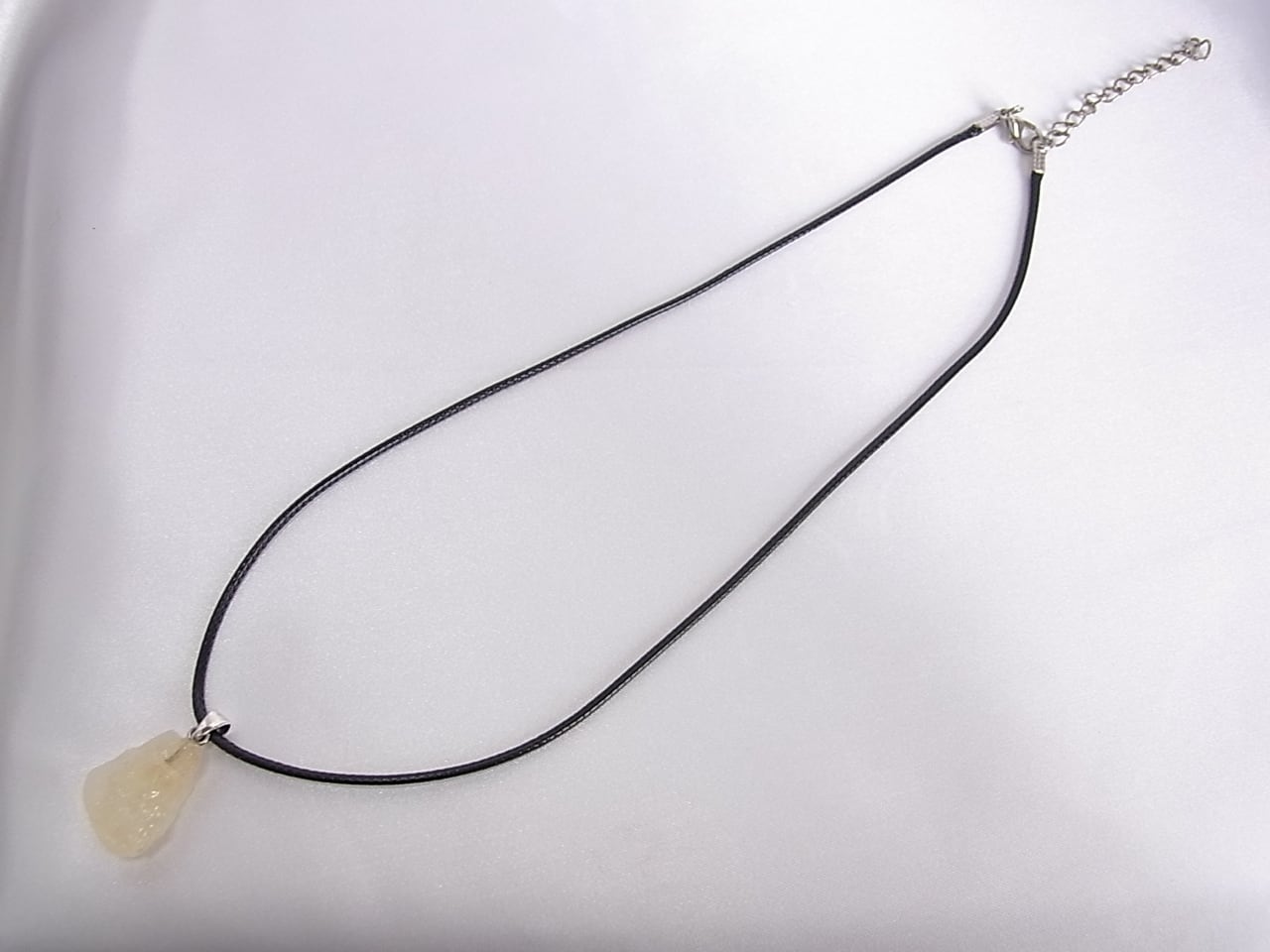 ■ネックレスチェーンの長さと材質:45cm+5cmアジャスター 真鍮製金具:カニカンタイプ ■ペンダントトップの大きさ:シトリンの原石 21mmx17mmx8mm 連結ひも:黒色、蝋引き紐 ※天然石は、色の濃淡や不純物の含有が有ります。ご了解のうえ、ご購入ください。
