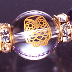 <ハッピー・幸運カード付き> 『幸福を運ぶ鳥』と親しまれているふくろうが刻印された、水晶のブレスレットです。<梟 ふくろう>古来より『幸福を運ぶ鳥』と親しまれているふくろう。このふくろうは持ち主に幸運を運びます。縁起の良い名前をもつ幸運を運ぶ開運の使者(鳥)として親しまれてきました。また『学問・知恵の神様』ともいわれており、学業成就、合格祈願を願う人にも親しまれています。水晶は古代より不思議な霊力がある石と伝えられ、身につけている人を災いから守り、数々の奇跡を起こすといわれています。開運の万能石でもあります。また風水において黄色は金運色とされており、金運・財運が授かるといわれています。そして紫水晶は浄化や邪気祓いの能力が強く、あらゆる場面で使えるお守りになります。【材質・サイズ等】[黄水晶タイプ]白水晶2個(10mm珠 梟刻印)、黄水晶12個(8mm珠/128面カット)、2個(6mm珠/128面カット)、3個(8×4mm/カット)、8個(6×3mm/カット)、ロンデル4個(6×3mm 真鍮/ラインストーン)、銅玉2個(5mm珠))[サイズ]約18cm(適応サイズ17cm)[アメジストタイプ]白水晶2個(10mm珠 梟刻印)、アメジスト12個(8mm珠/128面カット)、2個(6mm珠/128面カット)、3個(8×4mm/カット)、8個(6×3mm/カット)、ロンデル4個(6×3mm 真鍮/ラインストーン)、銅玉2個(5mm珠)[サイズ]約18cm(適応サイズ17cm)