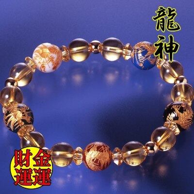 【材質・サイズ等】黄水晶10個(8mm珠)、10個(6×3mm/カット)、赤メノウ1個(10mm珠 龍刻印)、青メノウ1個(10mm珠 龍刻印)、緑メノウ1個(10mm珠 龍刻印)、オニキス1個(10mm珠 龍刻印)、シャコ貝1個(10mm珠 龍刻印)、銅玉5個(5mm珠)[サイズ]約18.5cm(適応サイズ17cm)[重量]約15g[中糸]ポリウレタンゴム[付属品]専用巾着袋[個装サイズ]縦15.8×横10.0×高さ2.0(cm)/25.0(g)
