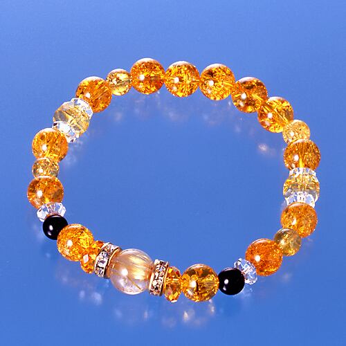 開運祈願や金運招来のお守りに「開運小判」付き! 金針水晶×黄水晶 大金運ブレスレット。金針水晶は水晶の中で最高のパワーを持つとされており、洞察力など人間の潜在能力を高める、金運・勝負運を高めるなどといわれています。「金線入り」は「金銭入り」といわれており、お金を呼び寄せる力があるとされています。 水晶は古代より不思議な霊力がある石と伝えられ、身につけている人を災いから守り数々の奇跡を起こすといわれています。そして風水において黄色は金運色であり、黄色(金色)身につけていると金運・財運が授かるといわれています。【材質・サイズ等】白水晶6個(6×3mm/カット)、黄水晶2個(8×5mm/カット)、2個(8×4mm/カット)、爆裂黄水晶13個(8mm珠)、4個(6mm珠)、金針水晶1個(10mm珠)、オニキス2個(6mm珠)、ロンデル2個(8×4mm 真鍮/ラインストーン)[サイズ]約18cm(内径)[重量]約18g[中糸]ポリウレタンゴム[付属品]専用巾着袋、開運小判×1枚[個装サイズ]縦15.8×横10.0×高さ3.0(cm)/33.0(g) [付属品]開運小判1枚(真鍮)/サイズ:約6.5cm、重量:約5g
