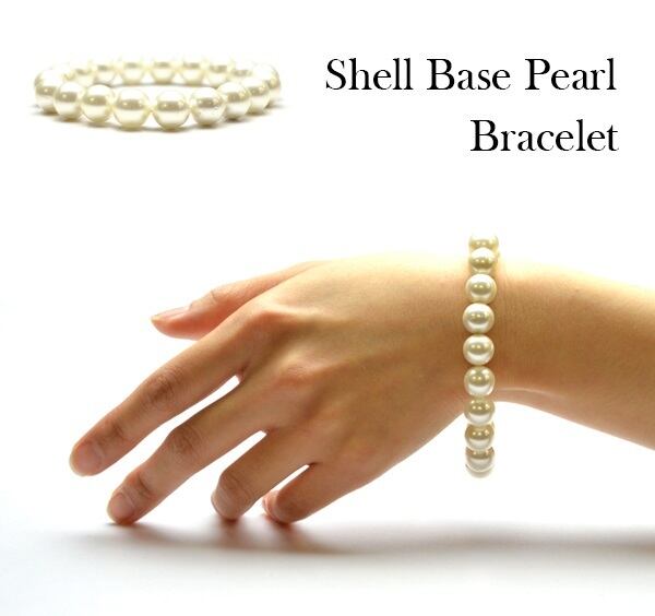 ■ご入金確認後、4~6営業日以内に発送いたします。■うるんとした艶が美しい、上質シェルパールのブレスレットで♪結婚式や式典など、慶びのお席に欠かせないパールアクセサリー。こちらに使用している「シェルパール」は、数ある人工真珠の中でも本真珠に引けをとらない高いクオリティ、コストパフォーマンスを誇ります。こちらのシェルパールは養殖真珠と同じように「天然貝」を核としてその上に幾度もパールエッセンスを重ねて作られています。真珠特有の、内から輝くような強い光沢がお肌映りをパッと明るく!本真珠のように汗や化粧品の付着ですぐ劣化してしまうこともないので、特別なお手入れをしなくても、ながくお使い頂ける利点もあります。【サイズ・素材】内周:約16cm 玉サイズ:8mm シェルパール 貝パール ※商品画像の色が見る環境によって現物と異なる場合があります。