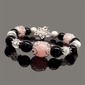 ■ご入金確認後、4~6営業日以内に発送いたします。■さりげなく可愛らしさを出したい時にぜひ、着用していただきたいアイテム☆恋愛運UP! オニキス&ローズクォーツブレスレット♪あらゆる愛を強めてくれて、また美と癒しの効果もあるローズクォーツとマイナスのオーラや邪気をはね除け自分に自信を持てる ブラックオニキスで構成されたブレスレットです♪【サイズ・素材】内周:約15.5cm 玉サイズ:ローズクォーツ 10mm シェルパール 8mm オニキス 8mm ※商品画像の色が見る環境によって現物と異なる場合があります。