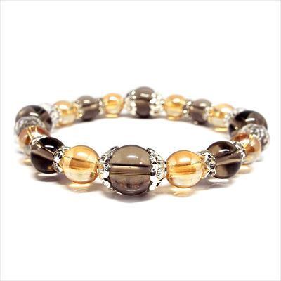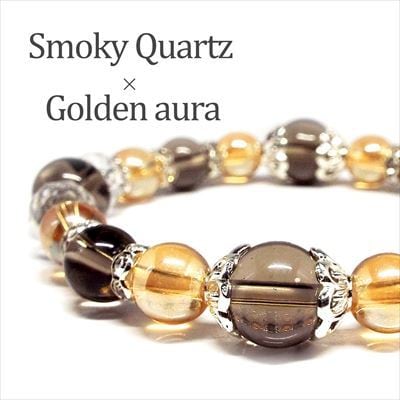 ■ご入金確認後、4~6営業日以内に発送いたします。■手元をシックに飾る組み合わせです!!!カジュアルにもちょっとしたオシャレにも☆スモーキークォーツは、水晶グループの中で最も身体と大地とのエネルギーを繋げる力に適した石です。心身を安定させ、持ち主の精神を安定した方向へ導き、恐怖や不安を解消するのに役立ちます。ゴールデンオーラは魅力と才能発揮の天然石。デザイナーやクリエイターなどのような「発想力、創造力」を必要とするようなお仕事。営業や接客などの「対話、プレゼン」などを主とするお仕事。このような方々にオススメできるパワーストーンです。【サイズ・素材】内周:約16cm 玉サイズ:スモーキークォーツ 10mm・8mm ゴールデンオーラ水晶 8mm ※商品画像の色が見る環境によって現物と異なる場合があります。