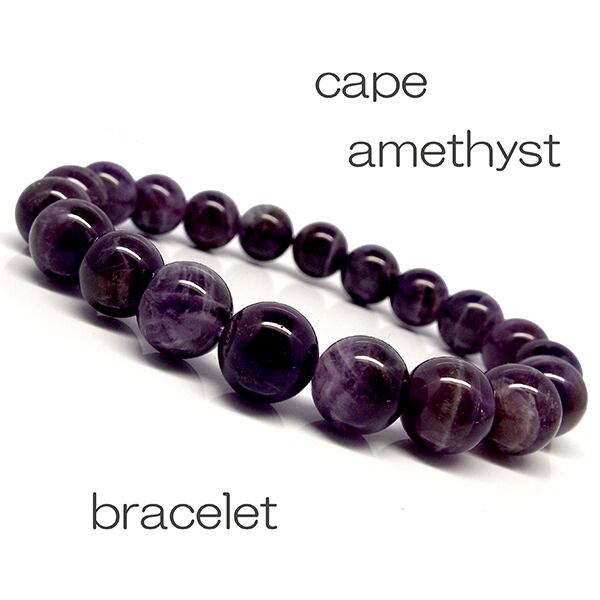 ■ご入金確認後、4~6営業日以内に発送いたします。■ケープアメジストは、アメジストとミルキークォーツが共生し、白っぽい部分と紫色の部分に分かれている鉱物です。アメジストがまるでミルキークォーツのケープを羽織っているように見えることから、この名前が付けられたという説と、アフリカのケープタウンから産出されたのでこの名前が付けられたという説があります。また原石の見た目から、別名ドッグティースアメジストという、犬の牙を意味する別名も持ちます。 このケープアメジストはアメジストと同様、非常に高い霊性を持つと伝えられています。直感力を高め邪悪なものから身を守る、魔除けの力を強く持つと言われる石ですので、お守りとして持つのもお勧めです。【サイズ・素材】内周:約16cm 玉サイズ:約10mm 素材:アメジスト ※商品画像の色が見る環境によって現物と異なる場合があります。
