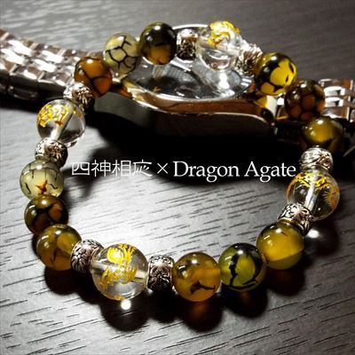 ■ご入金確認後、4~6営業日以内に発送いたします。■ドラゴンアゲートは和名を『龍紋瑪瑙』といいます。メノウに、龍の鱗のような模様が浮き出た物の事を指し、通常のメノウよりも、縁起の良い物とされてきたそうです。魔除け、邪気払いとしても強力な助けとなってくれる石です。 ■青龍:東の守護神。昔より川の流れを象徴し、成功と出世・富を導くといわれています。白虎:西の守護神。昔より月の女神の化身として子宝と安産を導くといわれています。また道をも象徴し、 人通り・家を訪ねる人を招くという意味で商売繁盛を助けてくれるともいわれています。朱雀:南の守護神。昔より朱雀は快適さと家運隆盛を導くといわれています。玄武:北の守護神。昔から北風を遮り病魔や災難を防ぎ、健康と長寿をもたらしてくれるといわれています。【サイズ・素材】内周:約18cm サイズ:四神水晶(金彫り) 12mm ドラゴンアゲート 10mm ※商品画像の色が見る環境によって現物と異なる場合があります。