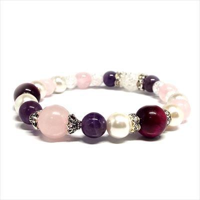 ■ご入金確認後、4~6営業日以内に発送いたします。■☆女性の為の金運・仕事運UPブレスレット☆人間関係の円滑化や人と人との縁を繋ぐといわれるピンクタイガーアイをもとに女性らしく、華やかに、エレガントにデザインいたしました♪がんばる女性を応援するお守りブレスです!更に、アメジスト×ローズクォーツの組み合わせは、恋愛成就の強い味方. 恋愛成就に高いサポート力を誇る。【サイズ・素材】内周:約17cm サイズ:ピンクタイガーアイ 10mm ローズクォーツ 10mm・8mm アメジスト 8mm シェルパール 8mm クラック水晶 10mm・6mm ※商品画像の色が見る環境によって現物と異なる場合があります。