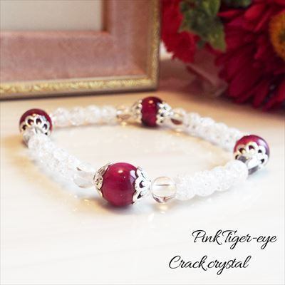■ご入金確認後、4~6営業日以内に発送いたします。■出会い〜恋愛成就〜結婚運を高める石たちを連ねてみました♪●女性らしさUP☆女性らしく清潔感たっぷりのブレスレット!!ブレスレット1つで女性らしさを作ってくれるモテブレス♪ピンクタイガーアイは、恋愛面では、女性的な魅力を高め、結婚運・家庭運を向上させるとされています。持ち主の内面の魅力を引き出し、好きな人を振り向かせ、誠実な愛を得られるようサポートしてくれます。【サイズ・素材】内周:約17cm サイズ:ピンクタイガーアイ 10mm 水晶 6mm クラック水晶 6mm ※商品画像の色が見る環境によって現物と異なる場合があります。
