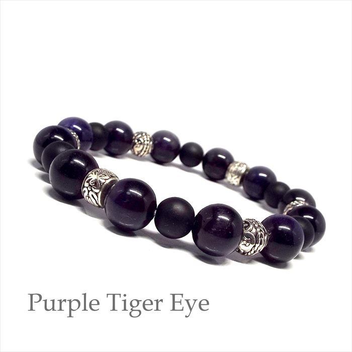 天然石 パワーストーン ブレスレット◆仕事運・金運・勝負運他◆パープルタイガーアイ マットオニキス メンズ用 SIO◆D2-82