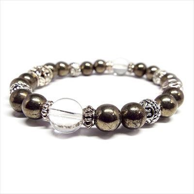 ■ご入金確認後、4~6営業日以内に発送いたします。■☆ギリシャ神話 守護戦士アキレウスの デザインブレスレット☆パイライトは、不死身の英雄とうたわれたギリシャ神話最強の戦士、アキレウスのような石です!あなたを守る守護戦士として現れ、その強力なパワーを火花を散らすように輝かせ発揮していきます♪パイライトと共に過ごせば、自分自身の信念を確かなものにでき、他からも脅かされることがなくなるだけでなく協力者や支援者による助けも引き寄せていけることでしょう。この石が放つ煌めくようなオーラをまとう時、あなたが あなたでいることを責める者達は消え去っていきます。【サイズ・素材】内周:約17.5cm サイズ:水晶 10mm パイライト 黄鉄鉱 8mm ※商品画像の色が見る環境によって現物と異なる場合があります。