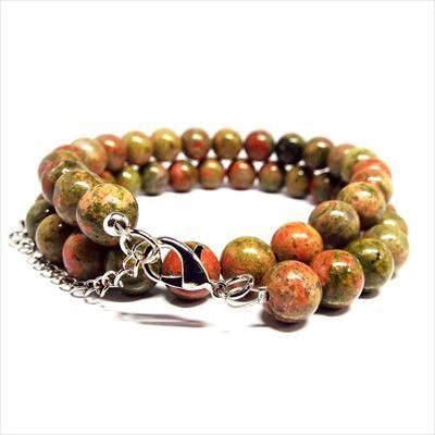 ■ご入金確認後、4~6営業日以内に発送いたします。■便利なアジャスター付なので男性・女性問わず着用頂けます☆ペアでどうぞ♪ユナカイトは決して派手さはない石ですが、この石は乱れがちな精神状態や感情、肉体のバランスを安定した状態に保つ助けになる石です。また、強くはありませんが、グラウディングの力もあります。余分な力やエネルギーの滞りを抜き取り、自然体であるように促してくれる石で、人生に安心感をもたらしてくれます。ユナカイトは緑簾石(エピドート)、緑泥石(クローライト)長石(フェルドスパー)、石英(クォーツ)などの混合石です。■商品不良を除き、お客様の都合による返品は承っておりません。■商品不良の場合は、商品到着後7日以内にご連絡下さい。 【サイズ・素材】全長:約41cm~約47cm 留め具:カニカン 素材:ユナカイト 緑簾石 【注意事項】天然石ですので、もともとある内包物(キズのように見える)がある場合があります。商品画像の色が見る環境によって現物と異なって見える場合があります。